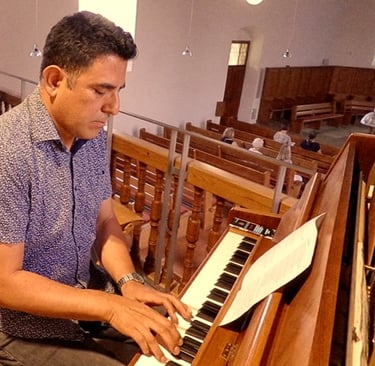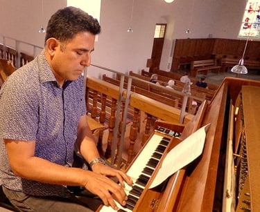 His musical path has since expanded across Latin, pop, and jazz projects, reflecting a broad and evolving sound. Now based in Switzerland, Miguel serves as musical director of the LOGO Band at his local church in Riggisberg and continues organ studies with Lee Stalder, exploring the Reformed Church’s liturgy and hymn tradition.