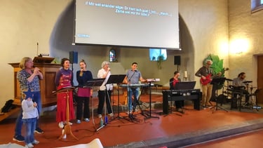 Lobgottesdienst (Praise Service) has been active since 2018 with the purpose of praising God in a family-oriented community through both contemporary and traditional songs in German, English, and Spanish where Miguel serves as music director. The band is open to anyone who wishes to sing or play, and the service offers a welcoming space for the whole family — one Saturday a month for about an hour. Afterward, everyone is invited to share dinner together in the church hall. You are warmly welcome to join us!