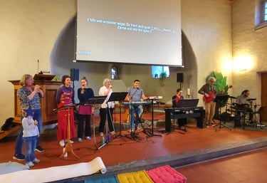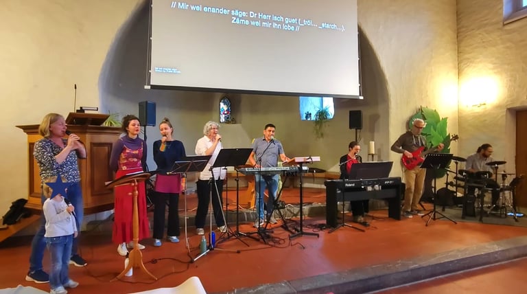 Usually every second Saturday of the month at 5:00 pm at the Reformed Church Riggisberg. Singing together in German, Swiss German, and English. Open microphone. Children welcome!